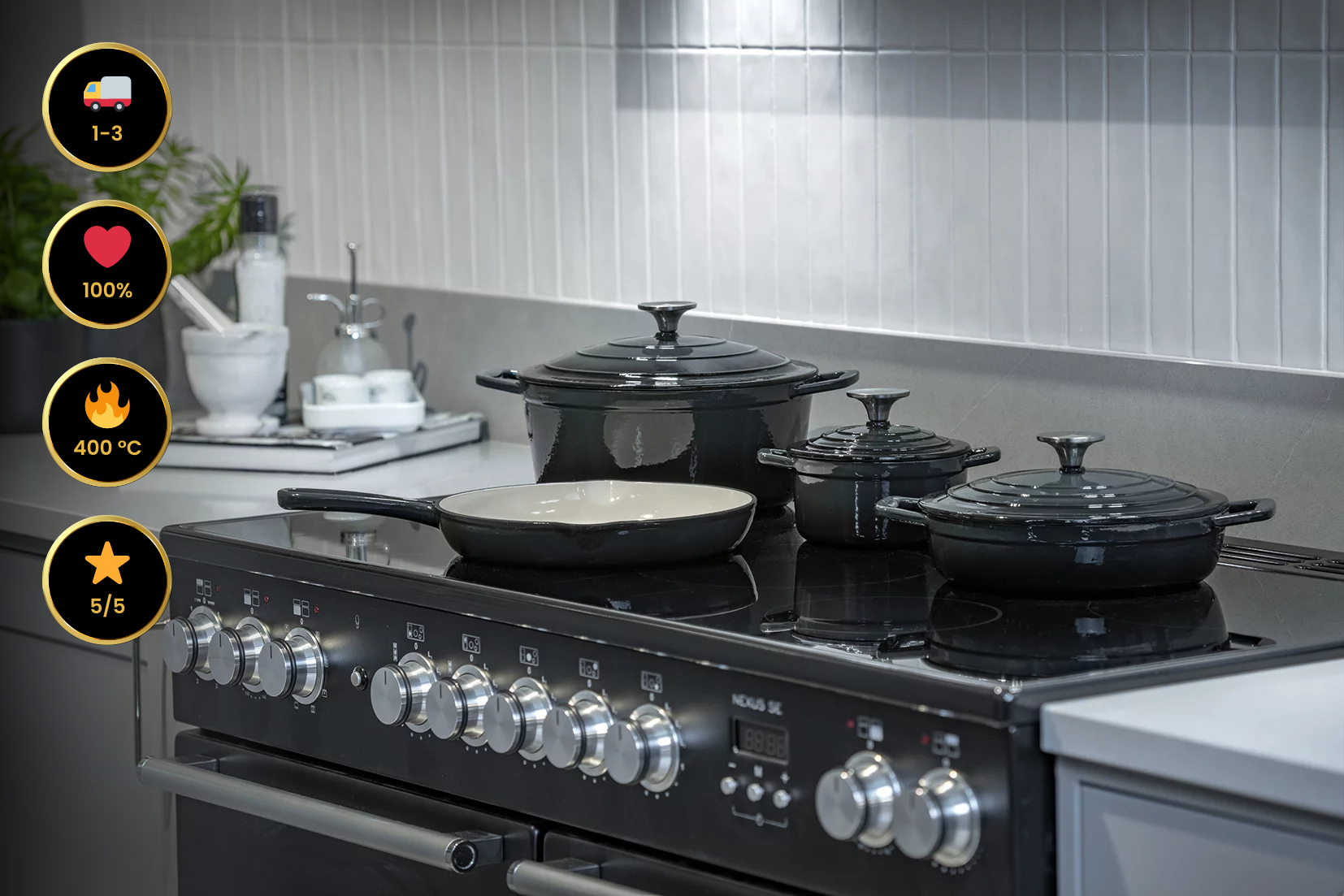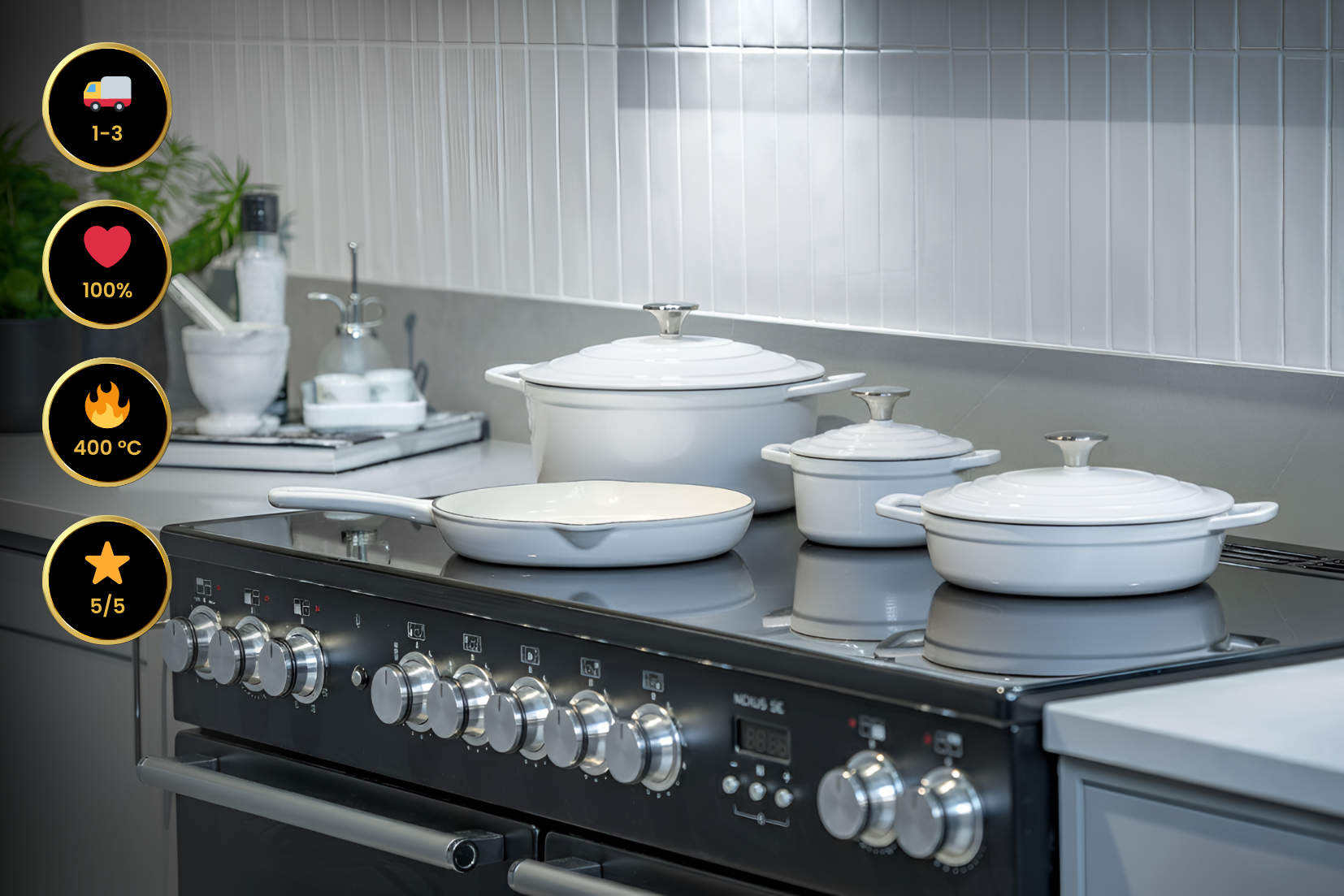 💡 Tip: Om het emailoppervlak te beschermen, gebruik je het beste houten, siliconen of kunststof keukengerei.