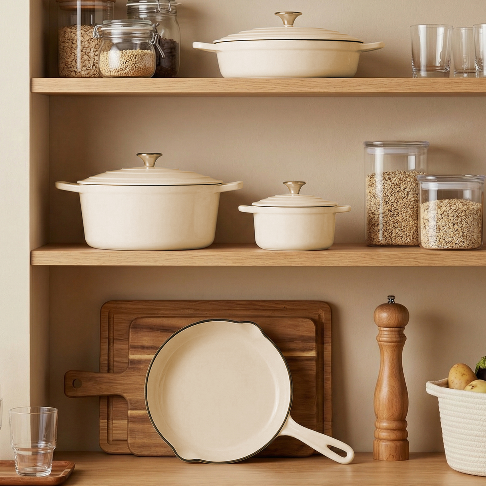 La ghisa si riscalda lentamente ma trattiene il calore più a lungo, il che significa che il cibo cuoce e frigge in modo uniforme. Il cibo rimane caldo a lungo, anche dopo averlo tolto dal forno. Un processo di cottura lento e un coperchio aderente sono caratteristiche eccellenti. I tuoi piatti mantengono il loro sapore e sono perfettamente cotti.